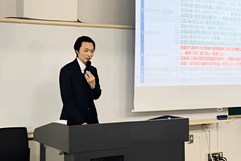 大学や専門学校などの教育機関に出向き、学生向けに情報セキュリティ・サイバーセキュリティの出張授業を実施しています。東京医療保健大学様での出張授業の際には、セキュリティの基本概念や医療現場でのランサムウェア攻撃の実例、そして実際のビジネス現場で実践されている効果的な対策などを紹介し、医療系の学生に自身が将来目指す領域でのセキュリティの重要性を認識してもらう機会を提供しました。